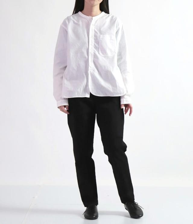やや手持ち感のある素材で、表面はさらりとした肌あたりでハリのある質感が特徴。ほどよくストレッチ性があり上品なフィット感を表現してくれます。