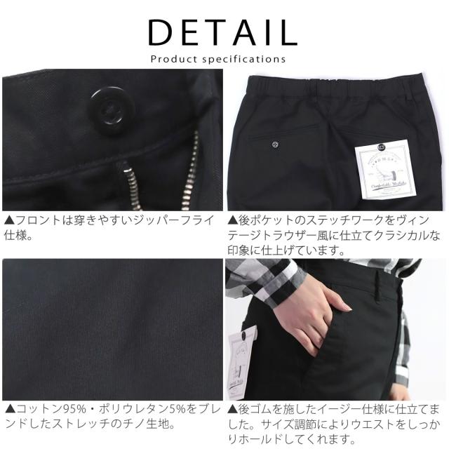 コットン95%・ポリウレタン5%をブレンドしたストレッチのチノ生地。