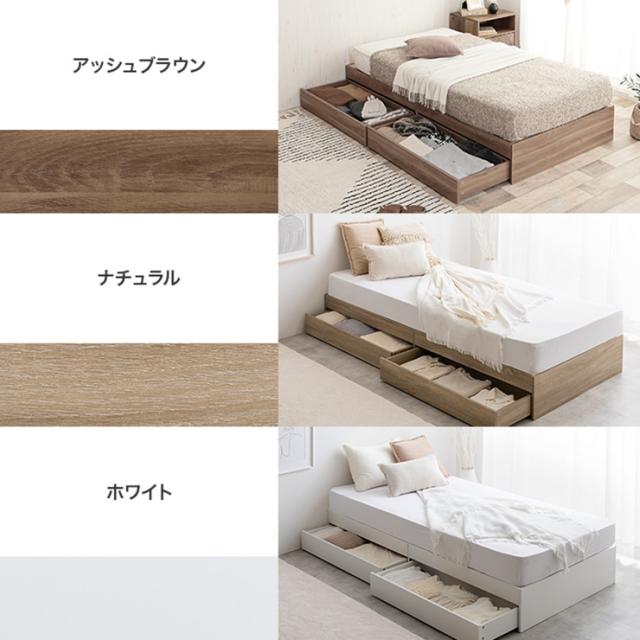 寝具 おしゃれ Glad ヘッドレス収納付きベッド オリジナルポケットコイルセット S ナチュラル シンプル 引き出し 大容量 省スペース キャスター付き 組立式