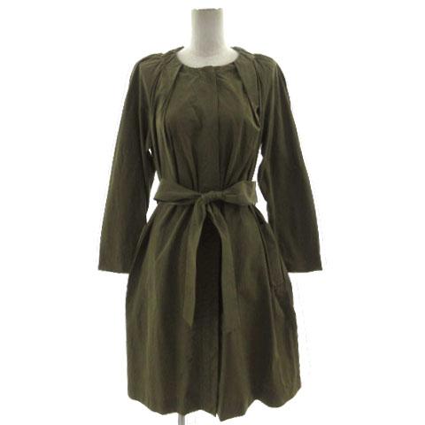 【中古】リエス Liesse メルローズ コート ノーカラー シャギーネック リボンベルト ナイロン カーキ 3 レディース