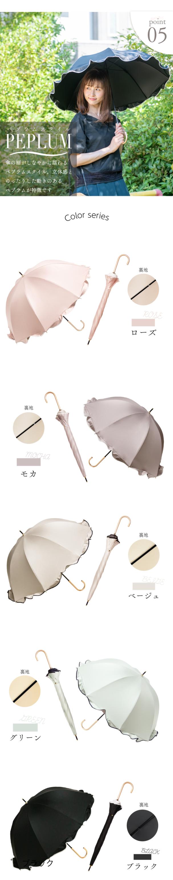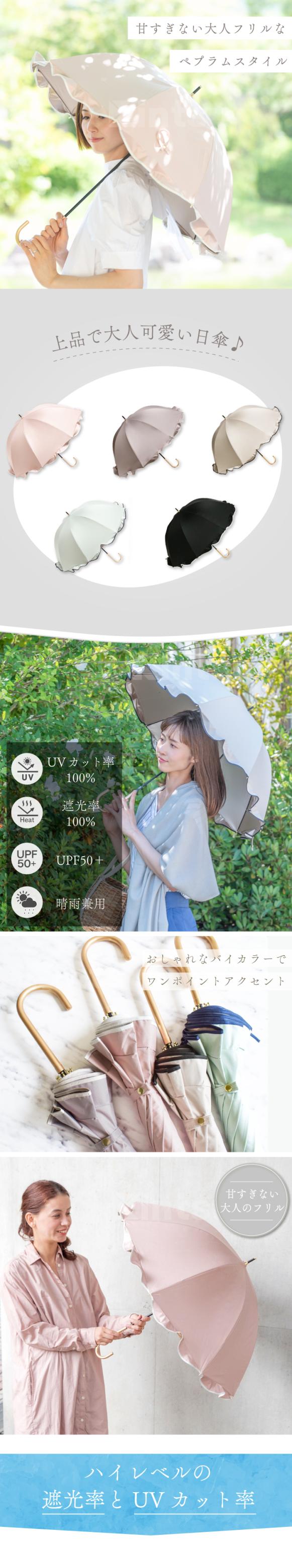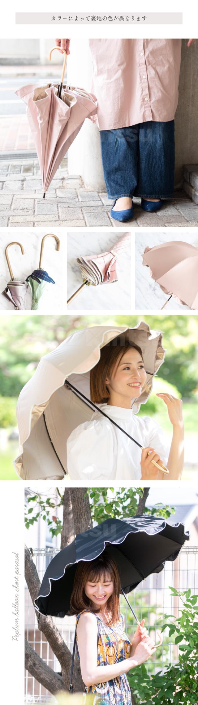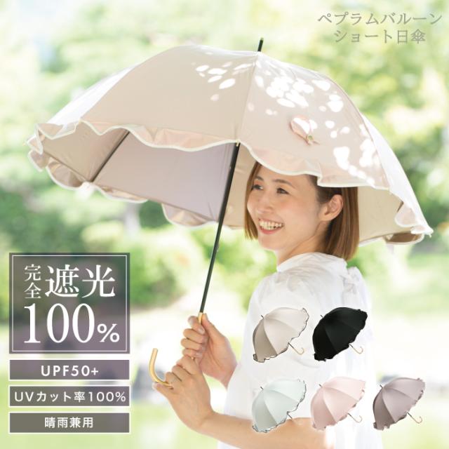 日傘 ペプラムバルーンショート日傘 遮光率100% 晴雨兼用 長傘 UVカット 日焼け対策 フリル 傘 レディース 軽量 くすみカラー 送料無料