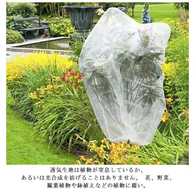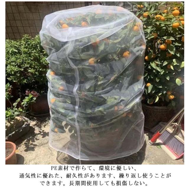 | メッシュ式に作成されており、通気性や耐久性に優れています。耐熱、耐寒、低熱吸収性があって、低直射日光強度という優れた特性を備えて、繰り返し使うことができてます。 PE素材で作らて、環境に優しい、通気性に優れた、耐久性があります、繰り返し使うことができます。長期間使用しても損傷しない。 果樹栽培には必須!鳥、ウサギ、その他の虫による噛み付きから植物を保護します。恐ろしい天気から大切な花木を守ります。 透気生地は植物が窒息しているか、あるいは光合成を妨げることはありません。 花、野菜、観葉植物や鉢植えなどの植物に覆い。 ファスナー付きタイプなので、樹木に被せてファスナーを締めるだけの簡単取付け。 広い開口部により、花や木に直接覆って、プラントの高さや大きさに合わせて自由に保護カバーを調整することができます。 | |