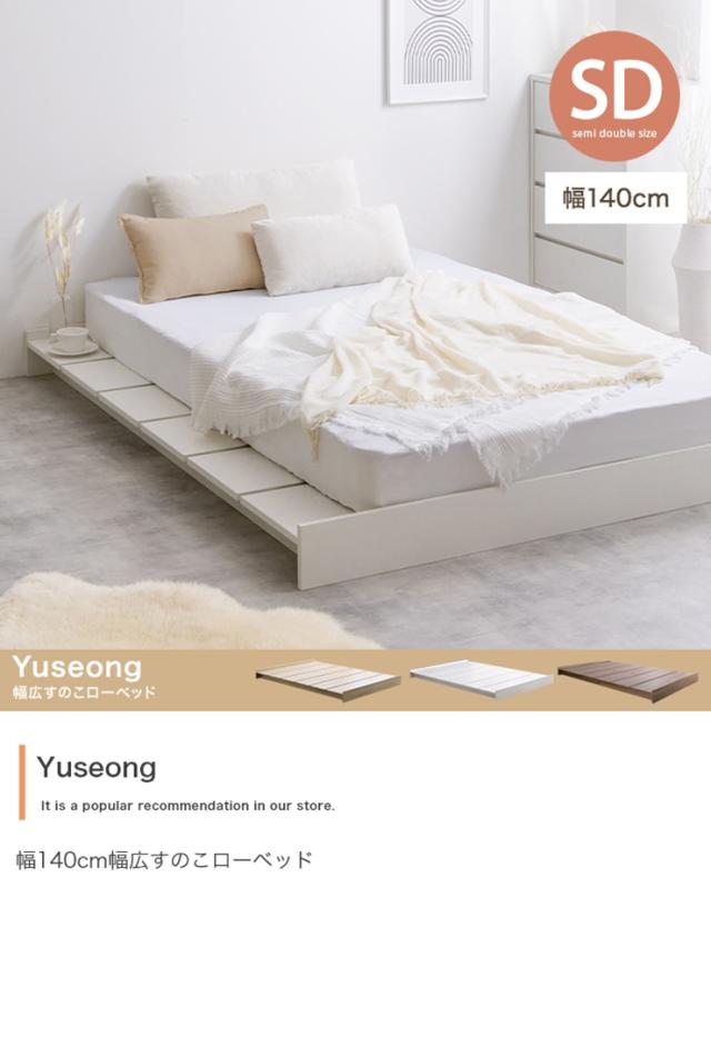 寝具 おしゃれ Yuseong 幅140cm幅広すのこローベッド フレームのみ セミダブル ナチュラル ベーシック ヘッドレス ワンルーム 組立式 木目調 ヘッドボード 低め