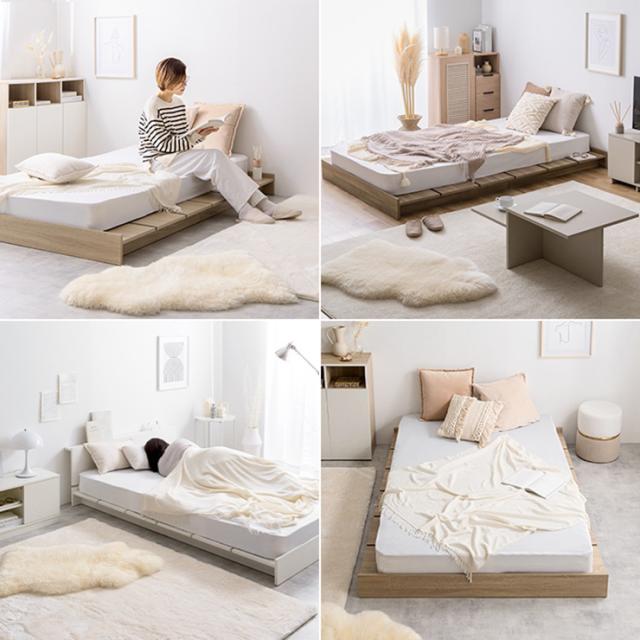 寝具 おしゃれ Yuseong 幅140cm幅広すのこローベッド 高密度ポケットコイルマットレス付 セミダブル ヘッドレスタイプ 快適 シンプル ナチュラル 北欧風 新生活