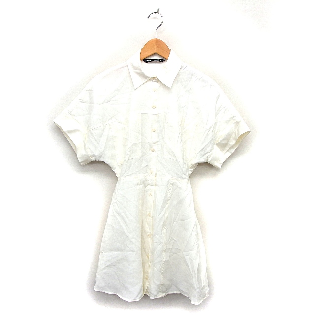【中古】ザラ ZARA シャツワンピース フレア ミニ ドルマンスリーブ ゆったり ステンカラー 五分袖 XS オフホワイト