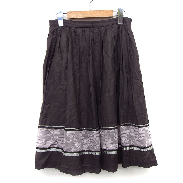 【中古】グレイッシュ GRAYISH フレア スカート ロング シフォン 無地 切替レース テープ タック 綿混 38 ブラウン 茶