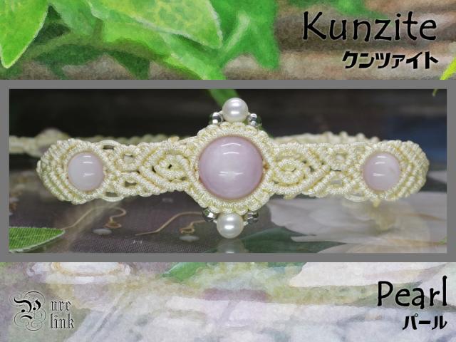 ピンクとホワイトの恋の魔石『クンツァイト』『パール』マクラメ編みブレス
