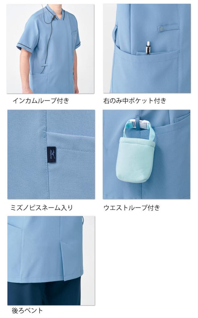 医療 介護 看護 制服 Mizuno ミズノ ファスナースクラブ 半袖 男女兼用 MZ-0500 ストレッチ 消臭 制電 ユナイト