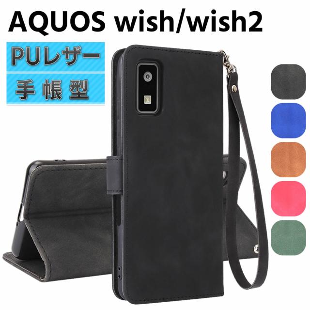AQUOS wish SHG06 wish2 SH-51C ケース スマートフォンケース 手帳型ケース ストラップ付 二つ折りケース カバー マグネット 定期入れ ポケット シンプル スマホケース TPUケース スタンド機能 携帯ケース