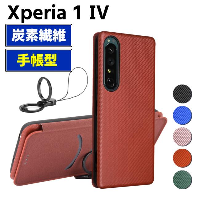 Xperia 1 IV SO-51C SOG06 手帳型 薄型 カーボンファイバー 炭素繊維カバー TPU 保護バンパー 財布型 マグネット式 カード収納 落下防止 ホルダ 横開き エクスペリア ワン マークフォー