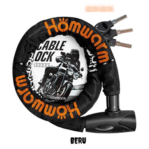 ◆商品名:Homwarm バイクロック チェーンロック バイク 自転車 ワイヤーロック φ(直径)22mm×1200mm 頑丈 盗難防止 鍵3本セット (ブラック)