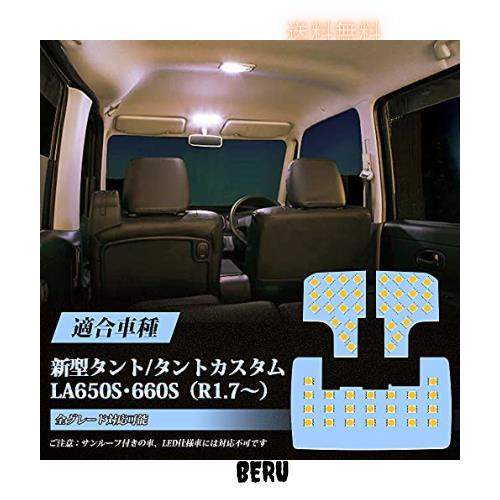 製品情報:LEDルームランプ セット、適合車種: ダイハツ 新型 タント/タントカスタム,型式: LA650S LA660S,年式: R1.7~ 専用 、発光カラー: 電球色 3500K、ルームランプセット内容: フロントルームライト×2、センタールームライト×1、全3点。※サンルーフ付きの車、LED仕様車には対応不可です。