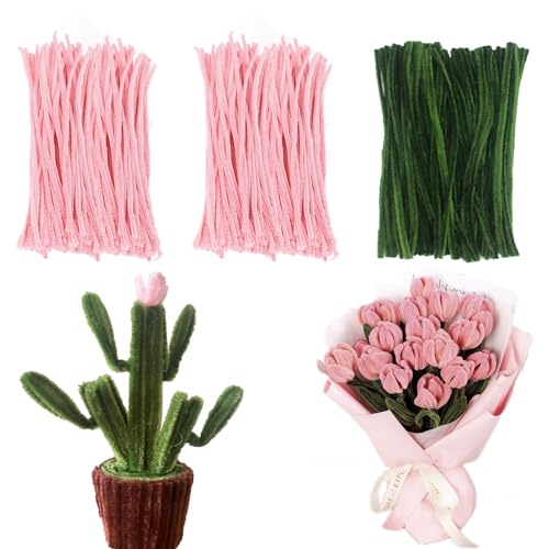 【幅の広い用途】このセットには200本のピンク色と100本の緑色の手芸モール,美しいチューリップのブーケができる。これは母の日、誕生日、記念日などの日のギフトとして最適です。ハンドメイドは相手にあなたの気持ちをちゃんと伝えられます!