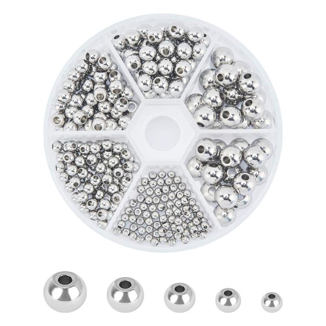 UNICRAFTALE 約290個 5種 3/4/5/6/8mm ラウンドビーズ ステンレス ビーズ 丸玉ビーズ スペーサービーズ ロンデルビーズ ステンレス色 金