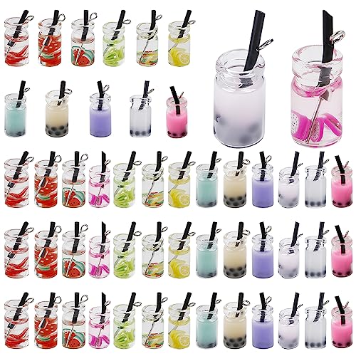 【サイズと数量】:タピオカチャーム*13種52個:ミルクティー:27x12x10mm、フルーツ飲み物:25~28x10mm.