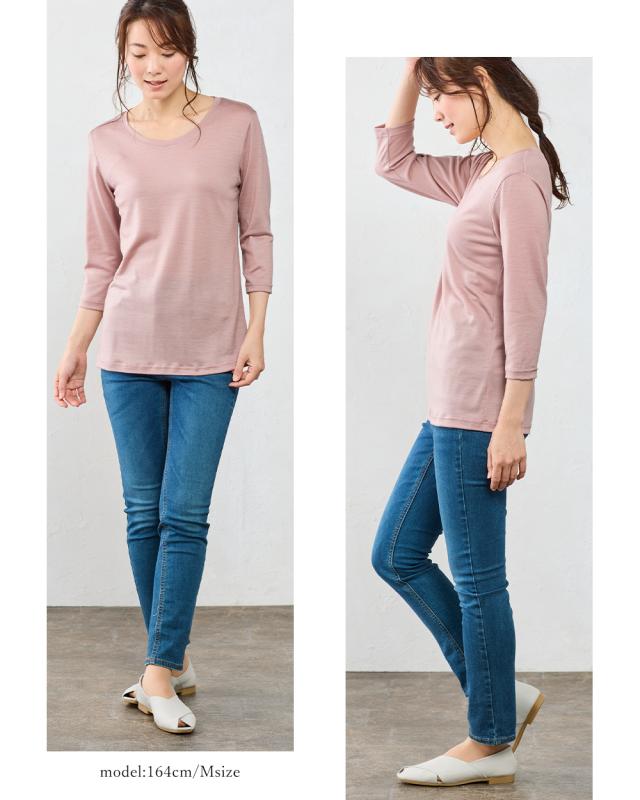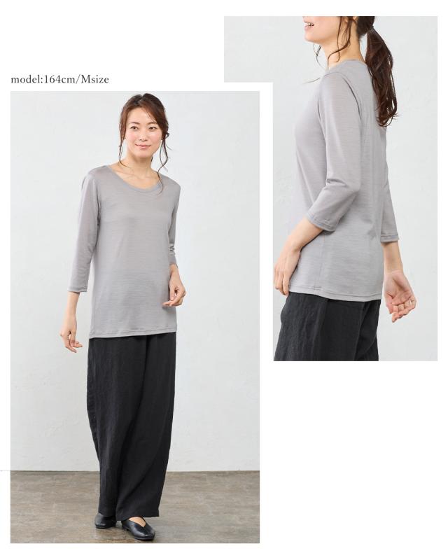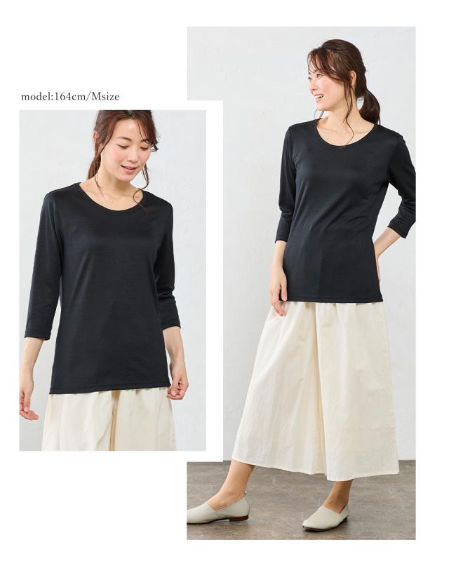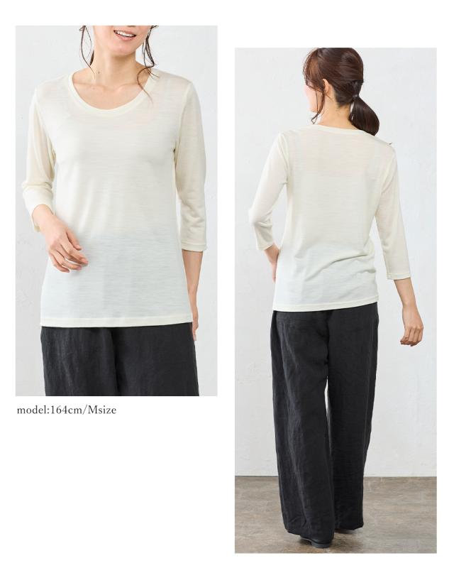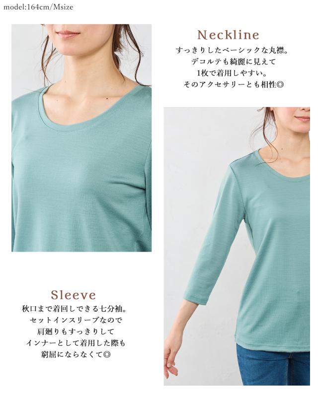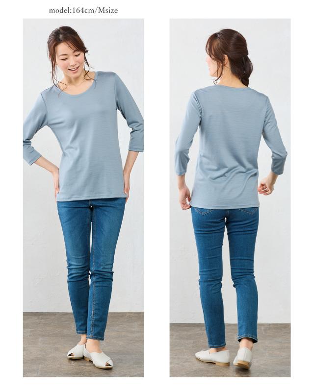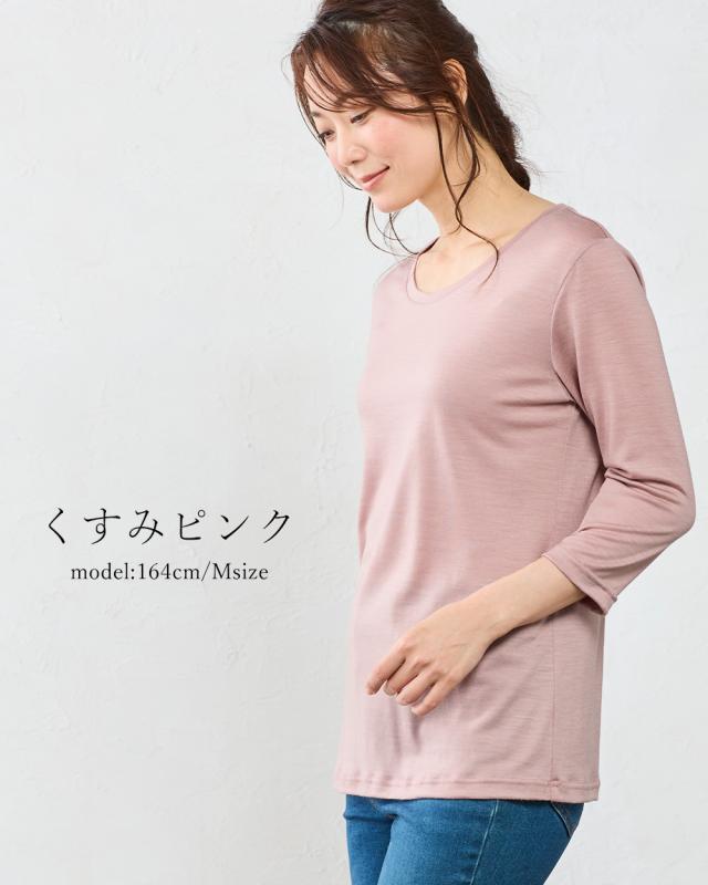 日本製 メリノウール Tシャツ レディース 大人 ファッション インナー 登山 7分袖 半袖 クルーネック 無地 カットソー アンダーウェア カットソー きれいめ ベースレイヤー 春 夏 秋 冬 30代 40代 50代 60代 毛 ウール