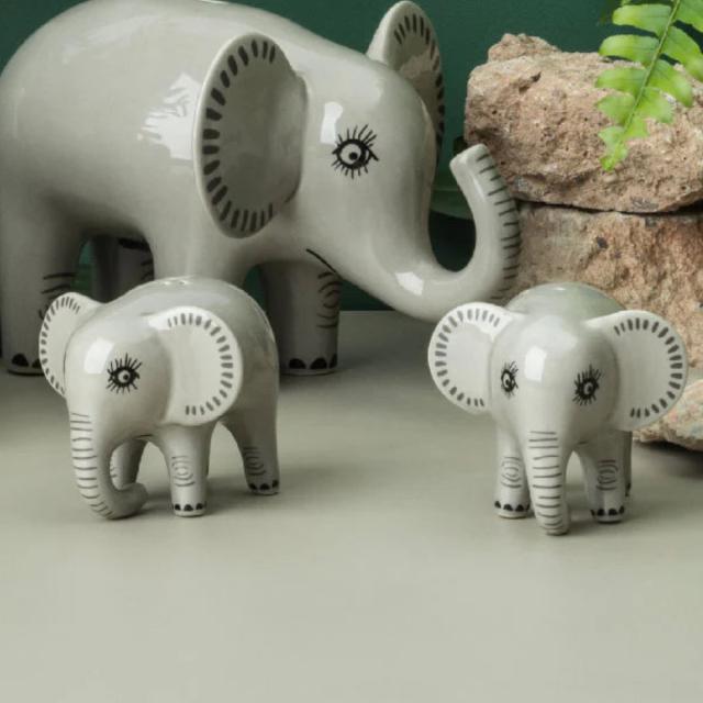 ゾウの赤ちゃんをモチーフにしたソルト&ペッパーシェイカーです。手のひらサイズでとても可愛らしく、そのままテーブルに置いておいても素敵なデザインになっています。