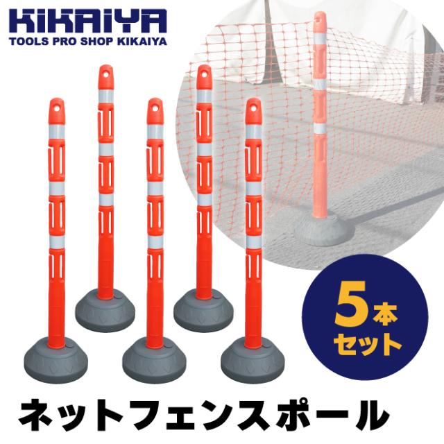 ネットフェンス ポール 5本セット 軽量 フック付 簡単設置 ポール ポスト 反射シート バリケード 仕切 侵入防止 工事安全保安用品 KIKAIYA