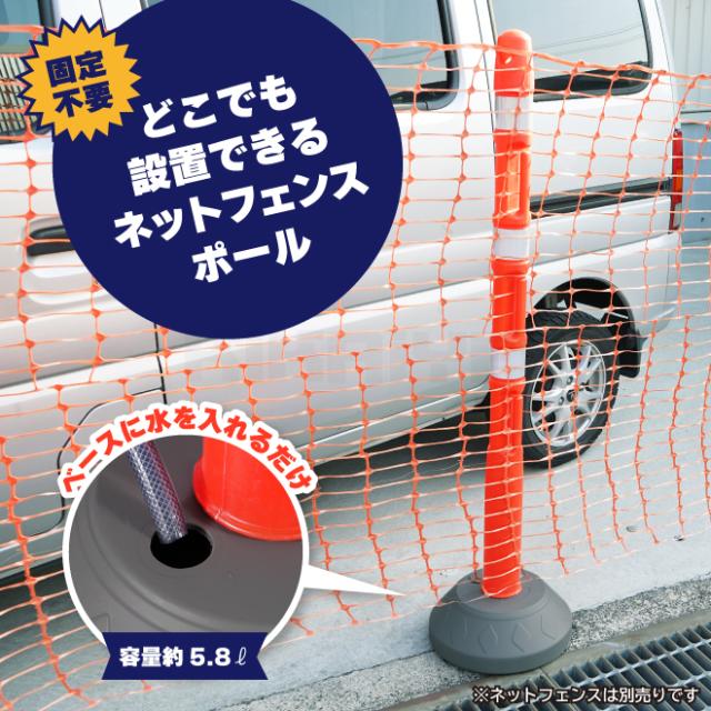 | サイズ | ポールセット/高さ1350mm×接地面Φ335mm ネットフェンス/高さ約1185mm×長さ約30M |