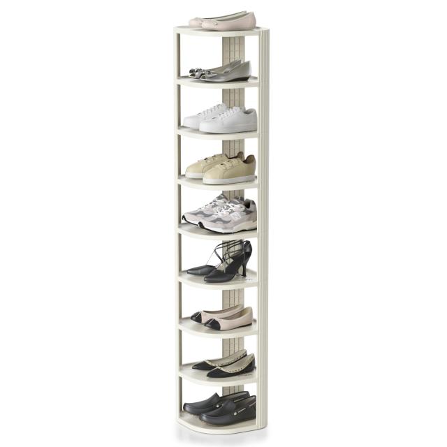 ・奥行き28cmのスリムなシューズラックです。靴一足ぶんのスペースで縦向きに9足ぶんの靴を入れられるので、スペースの少ない玄関にオススメ!