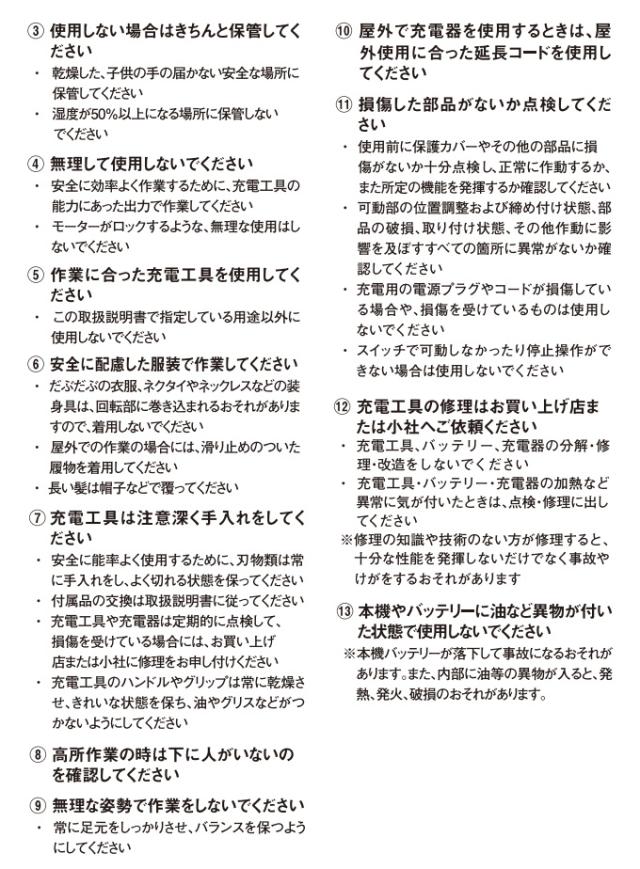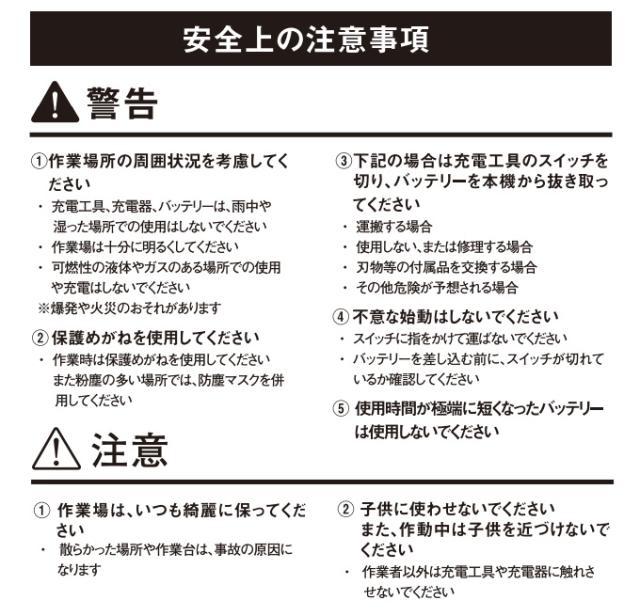 電池:リチウムイオン電池 電圧:直流18V 容量:2000mAh 重量:約380g |