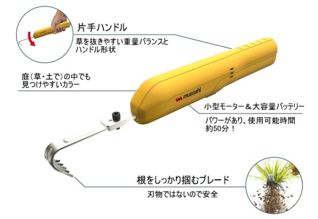 充電式 除草バイブレーターミニ WE-730 送料無料 電動 除草 草取り 草むしり 振動 根こそぎ コードレス ミニサイズ