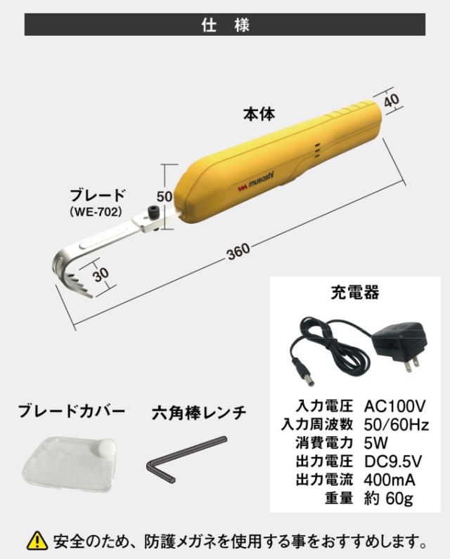 充電器 ブレード(WE-702) 六角棒レンチ ブレードカバー(ブレード装着) |