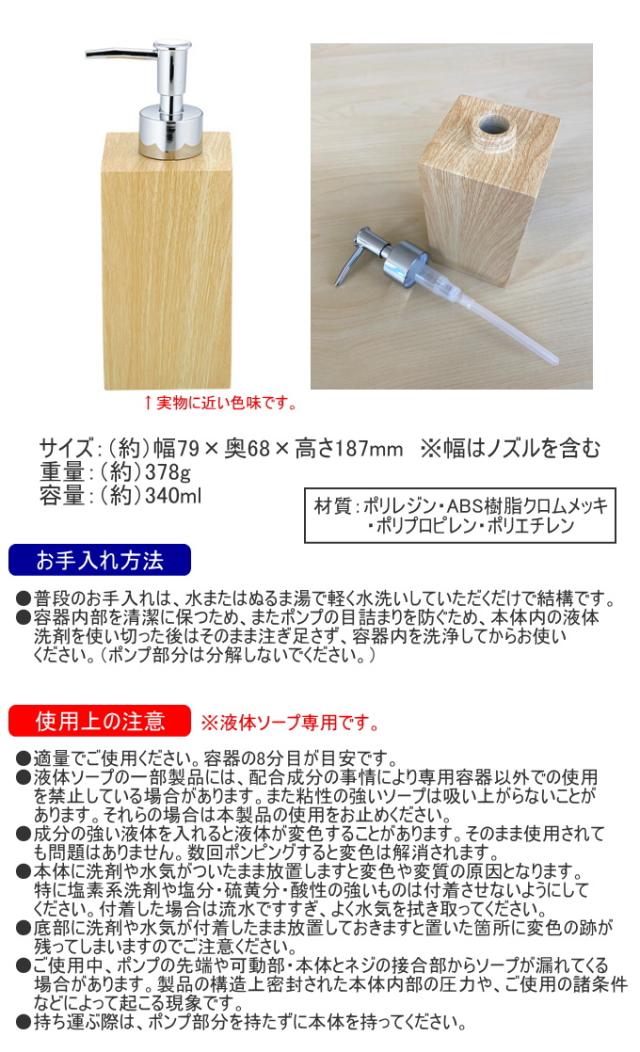 ティンバー ディスペンサー 340ml 送料無料 液体ソープ 詰め替え ボトル おしゃれ 木目調 佐藤金属興業 SALUS