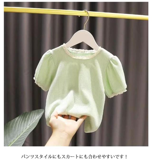 送料無料 韓国風 半袖Tシャツ 夏 キッズ シンプル チュール袖トップス 女の子 可愛い 90 送料無料 カジュアル フリル裾 110 子供服 100 ガールズ 120 130 柔らかい 肌に優しい