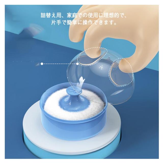 | 多機能なベビーパウダーパフ・パウダーケースの2個セット。 ソフトなパウダーパフは、パウダーを体に均等かつスムーズに塗ります。 ボックスに適量のパウダーを入れ、パウダーパフで赤ちゃんの肌を優しくなでます。 詰替え用、家庭での使用に理想的で、片手で簡単に操作できます。 ふた付きのパフボックスで、パフのが他の場所に落ちる心配がなく、使用後は箱に収納できます。 | |