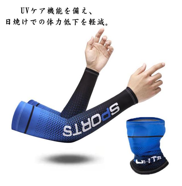 2点セット 紫外線対策 フェイスカバー アームカバー 冷感 自転車 ストレッチ アイスシルク メンズ 伸縮 キャンプ 暑さ対策 UVカット 野外 スポーツ ドライブ スポーツ 運転 真夏 アウトドア 日焼け防止