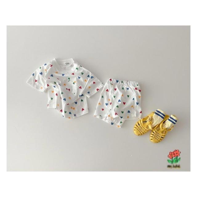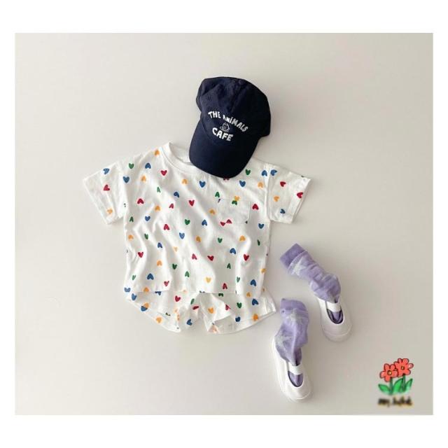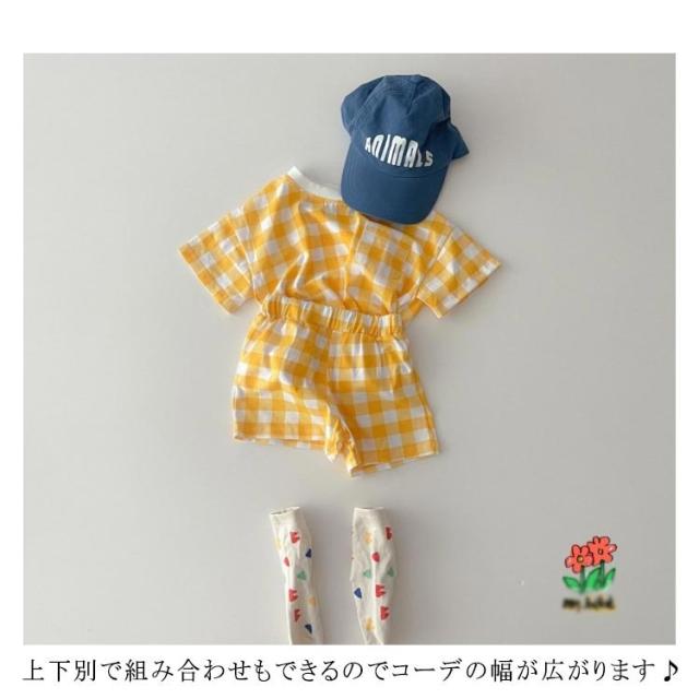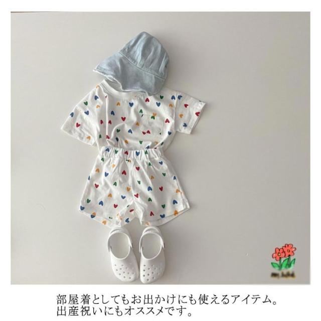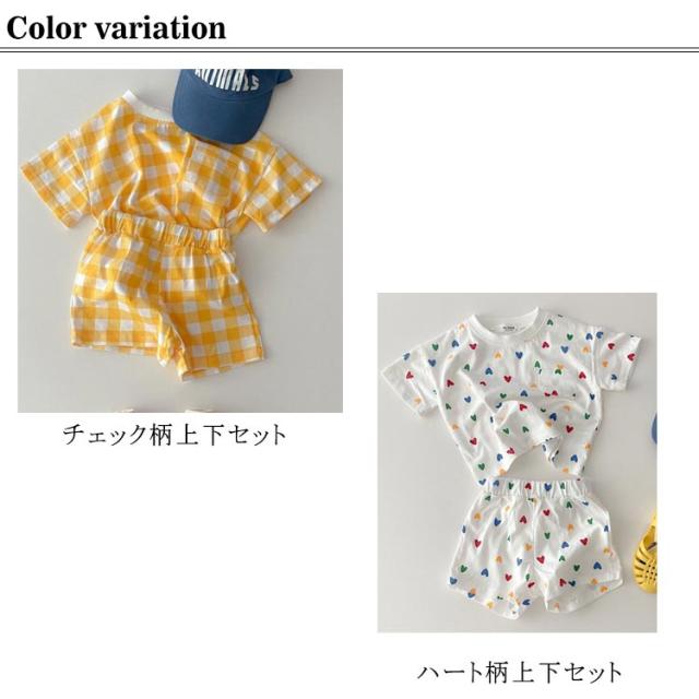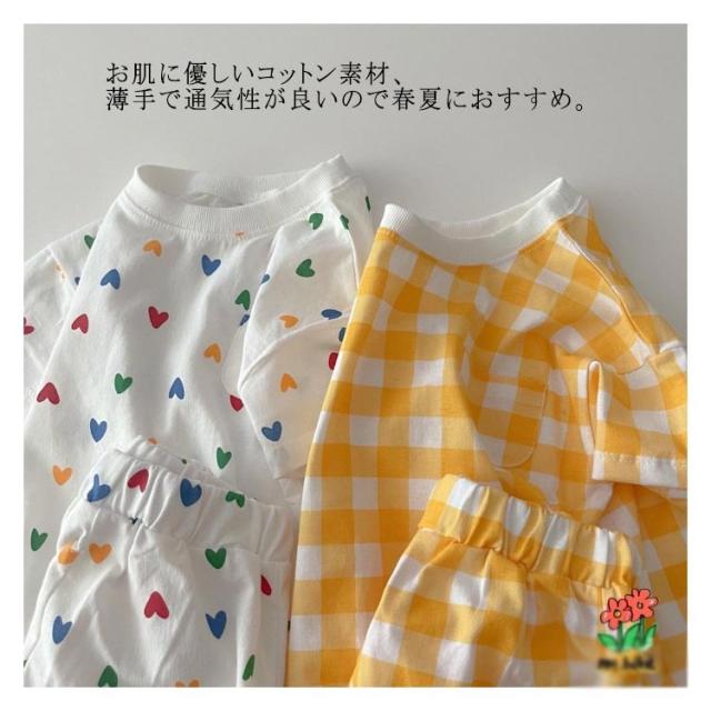 短パン 子供服 新生児 半袖tシャツ 女の子 セットアップ 綿 男の子 おしゃれ コットン 可愛い 部屋着 ベビー ショートパンツ チェック柄 ハート柄 半ズボン 上下セット 半袖 夏 ベビー お出かけ 66cm 73cm 80cm 90cm