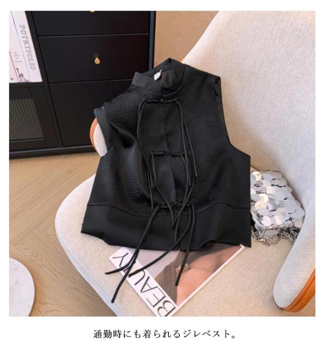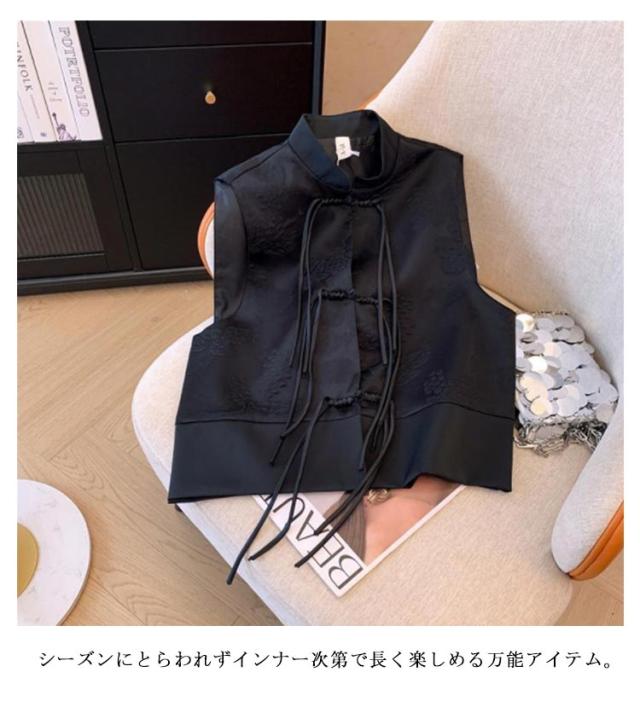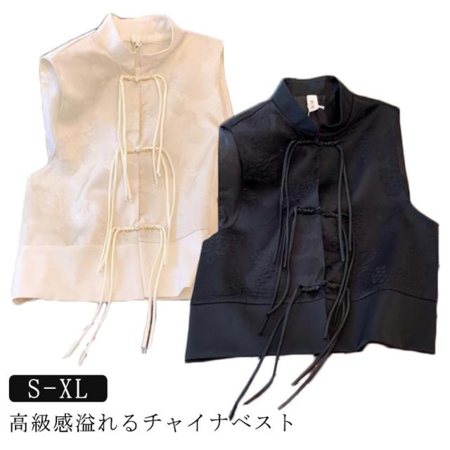 ジレ トップス レディース チャイナボタン 夏 スリット 秋 春 チャイナジレ チャイナ風 ベスト 前開き 華やか 中華風 刺繍 柄 ベスト タッセル 羽織り チャイナ オフィス 重ね着 レイヤード 通勤 OL 冬