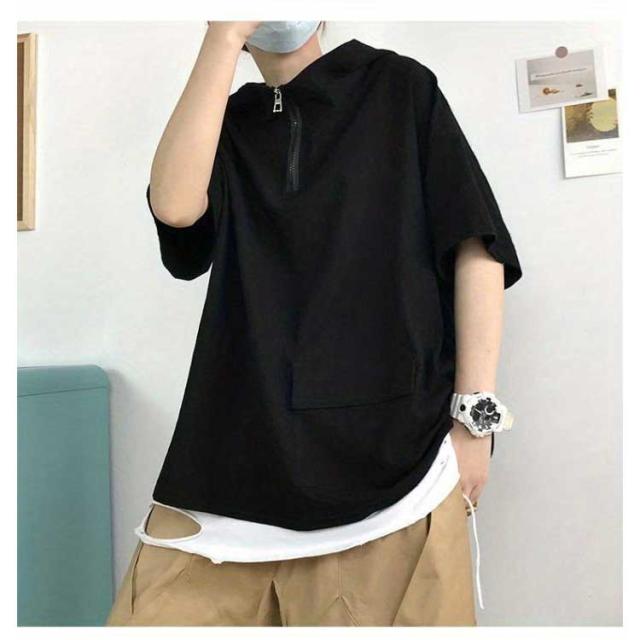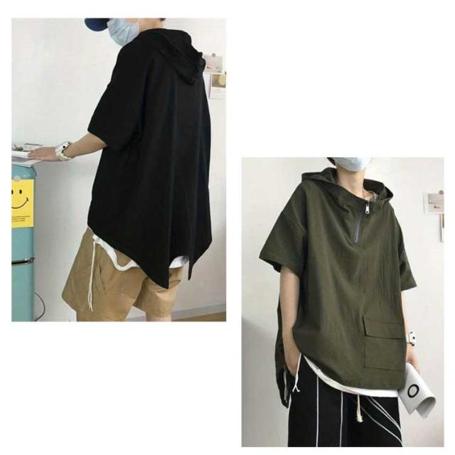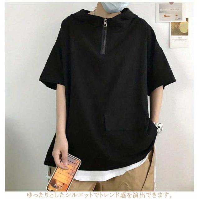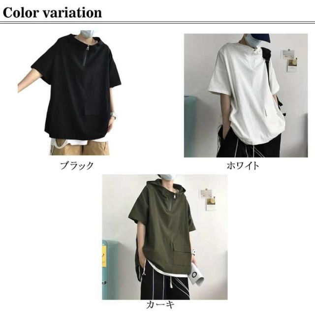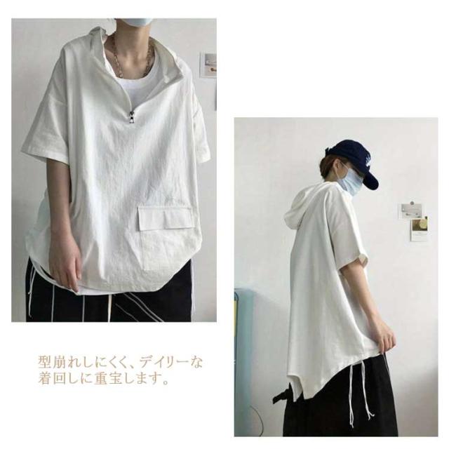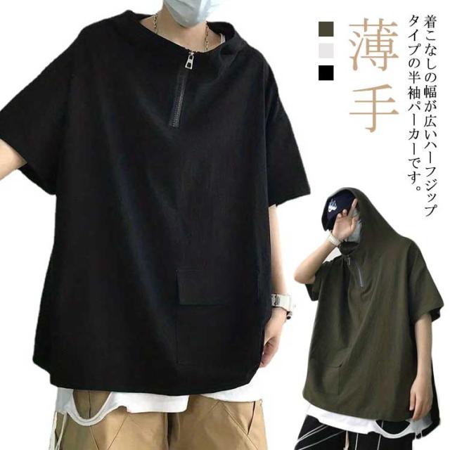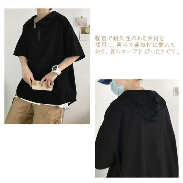 半袖パーカー メンズ レディース 夏服 ビッグシルエット プルオーバー パーカー ハーフジップ ユニセックス 無地 薄手 トップス 大きサイズ フーディー ゴルフ 釣り 登山 スポーツ アウトドア 男女兼用