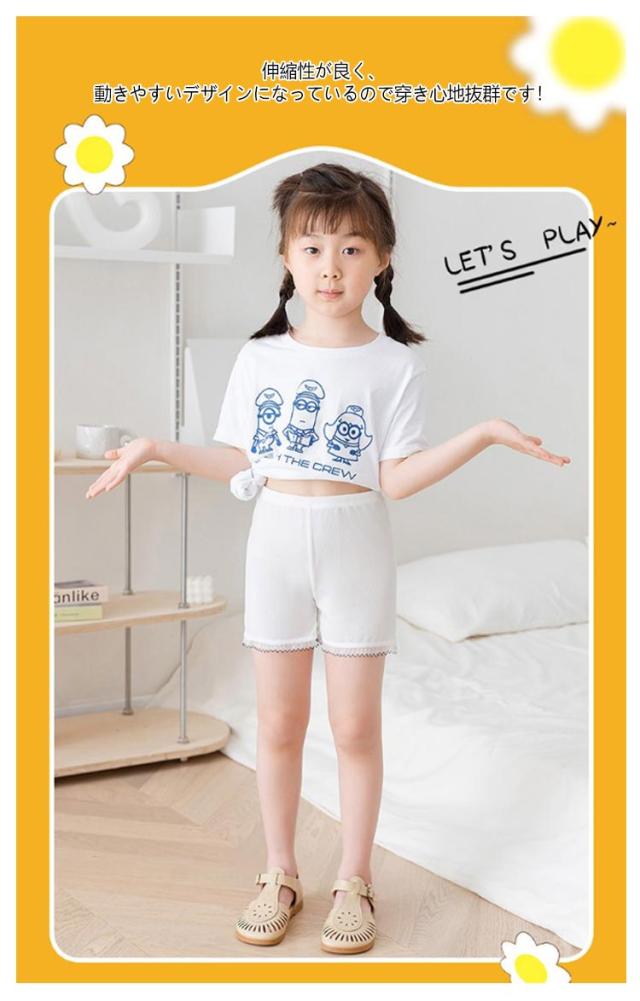 | 110-160cm!夏でも快適♪キッズ用接触冷感ペチパンツ 肌に触れるだけでひんやりするので暑い時期にオススメ♪ 伸縮性が良く、動きやすいデザインになっているので穿き心地抜群です! ウエストもゴム仕様なので、着脱しやすく、通学や外遊びにも大活躍のアイテムです。 裾にレースをあしらったデザインが甘さをプラスしてくれます。 ドレスの透け防止に、いつものスカートの下のアンダーパンッとしてデイリーに使えます。 | |