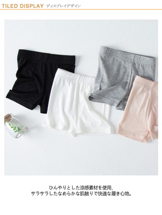 | 3枚セット!100-160cm!キッズからジュニア向けのシンプルで可愛いペチパンツです。 ひんやりとした涼感素材を使用、サラサラしたなめらかな肌触りで快適な履き心地。 ストレッチ性も高く、アクティブな動きにしっかり対応します。 下着の透け防止やチラ見え対策としてスカートやワンピースの下に履くのはもちろん、ルームウェアやパジャマとしてもお使いいただけます。 | |