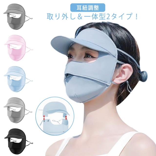 呼吸穴付き ひんやり レディース 洗える 顔ガード 取り外し&一体型2タイプ!ツバ付きフェイスカバー 帽子 接触冷感 小顔効果 UPF50+ 日焼け止め 日焼け防止 息苦しくない UVカット 取り外し&一体型2タイプ!ツバ付きフェイスカバー フェイスガード 紫外線対策 スポーツ