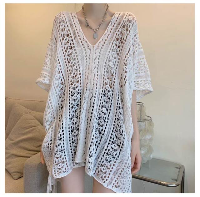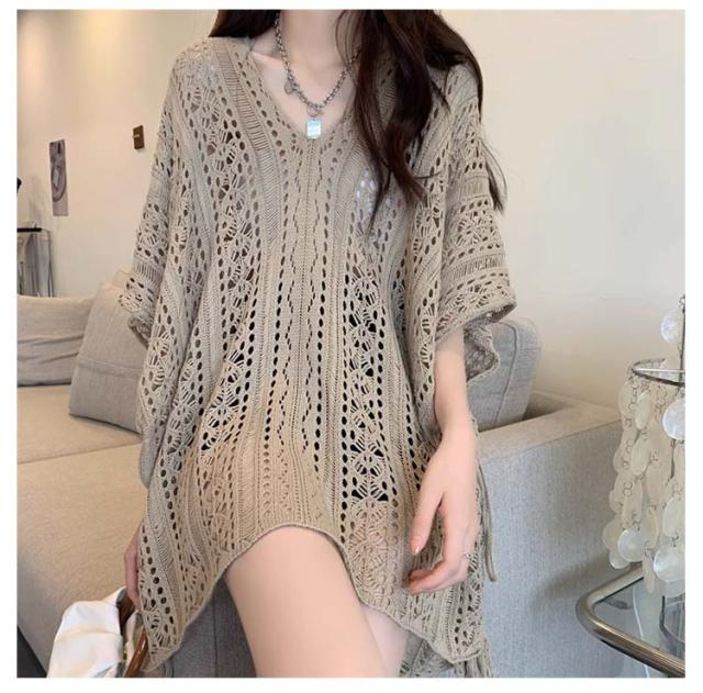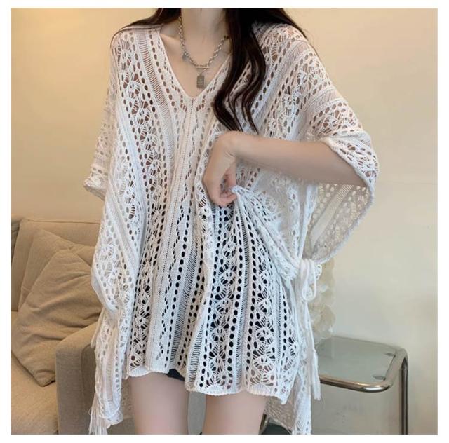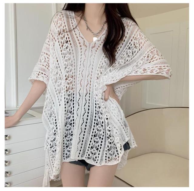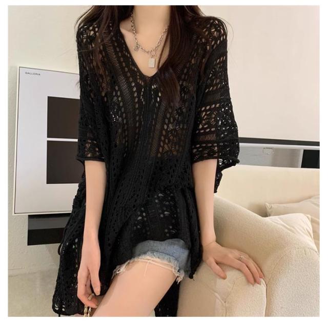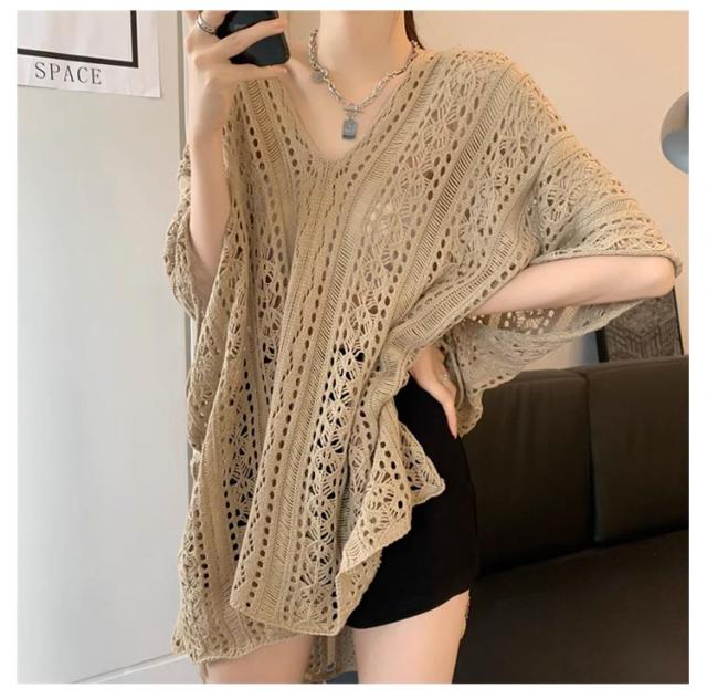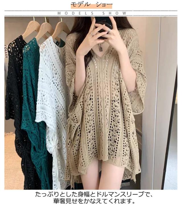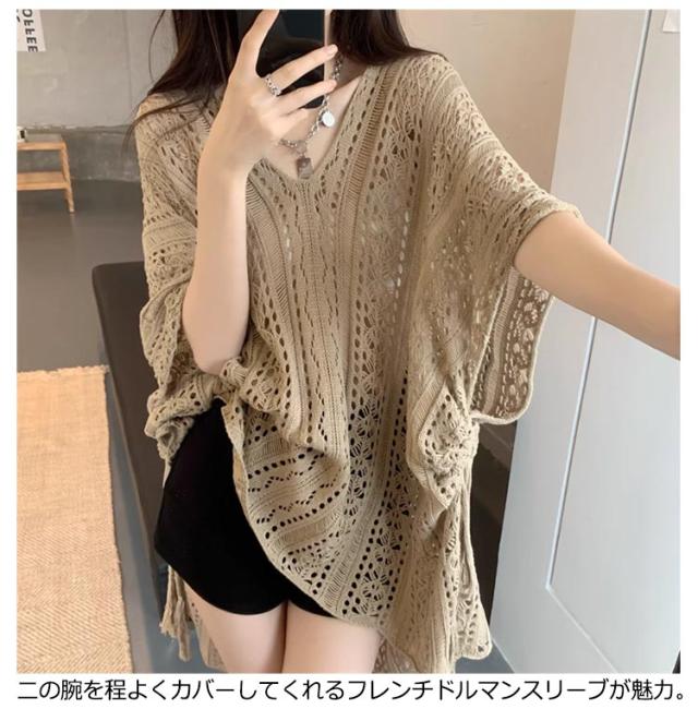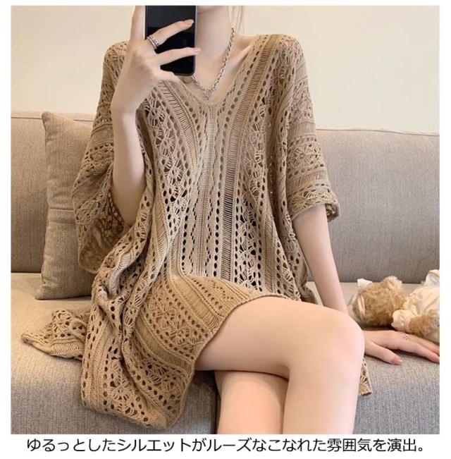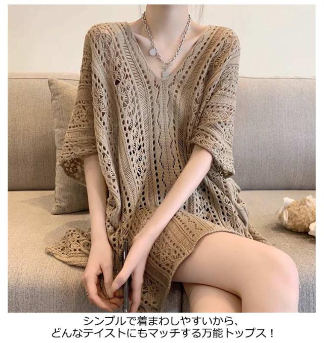 メッシュニット フィッシュネット 透かし編み 肌見せ メッシュニット メッシュ レイヤード vネック トップス 重ね着 体型カバー あみあみ 透け プルオーバー かぎ針編み ゆったり 透ける ふんわり 半袖 送料無料 日焼け防止 冷房対策 無地