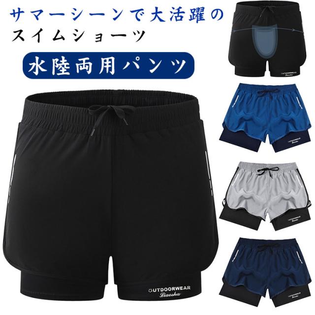 水着 ズボン 海 吸水速乾 インナーパンツ付き 水陸両用パンツ ショートパンツ サーフパンツ スイムパンツ ショーツ メンズ ストレッチ 通気性 水着男性用 男性 水着 スイムウェア プール サーフパンツ 海水浴 水泳 スポーツ用 スイミング 水遊び