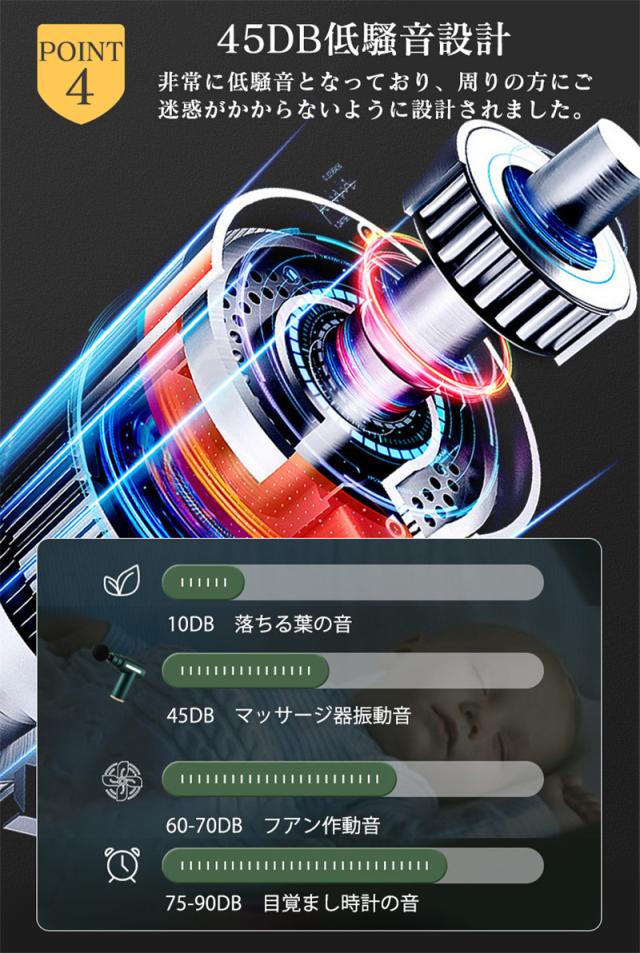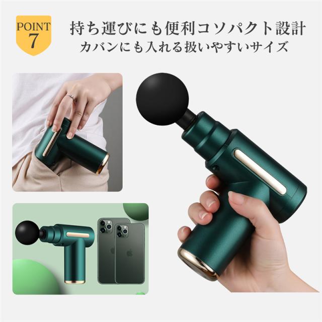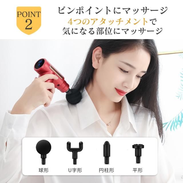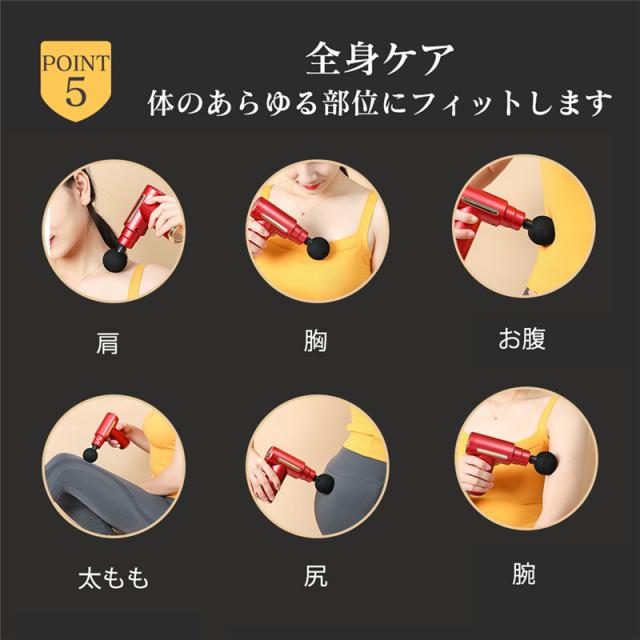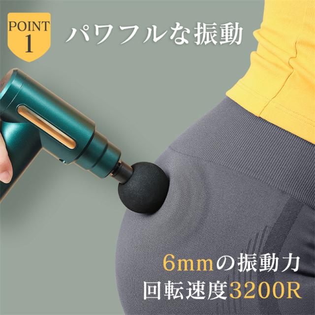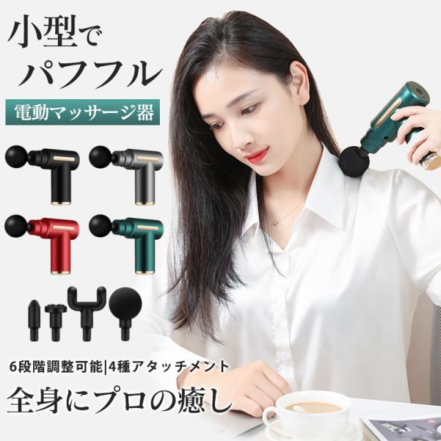 マッサージ器 小型 マッサージガン 足 肩 腰 背中 全身 静音 軽量6段階調節 強力振動 全身マッサージ4種類のヘッド付き コンパクト