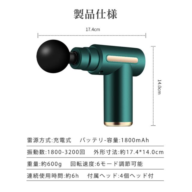 電動 全身 防水 ミニ ヘッド 4個ヘッド付属 電動マッサージガン 女性 男性 年寄り 男女兼用 多機能 母の日 敬老の日 父の日 ギフト プレゼント 子供 大人 高齢者 介護 Type-C充電式 1800mAh大容量 最速3200回/分 携帯便利 記念日 誕生日プレゼント 出張 旅行