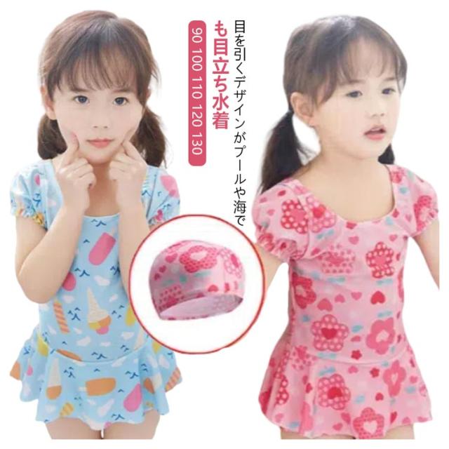 保育園 幼稚園 ワンピース水着 キッズ 水着 水泳キャップ付き 動きやすい 女の子 90 130 女の子水着 キッズ水着 学校用水着 海 体型カバー 子供水着 かわいい プール 100 110 120 子供