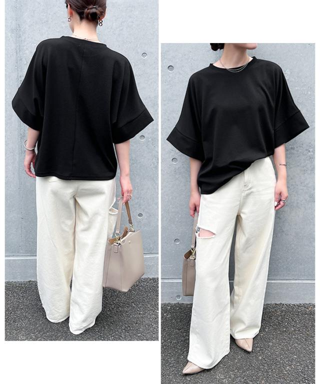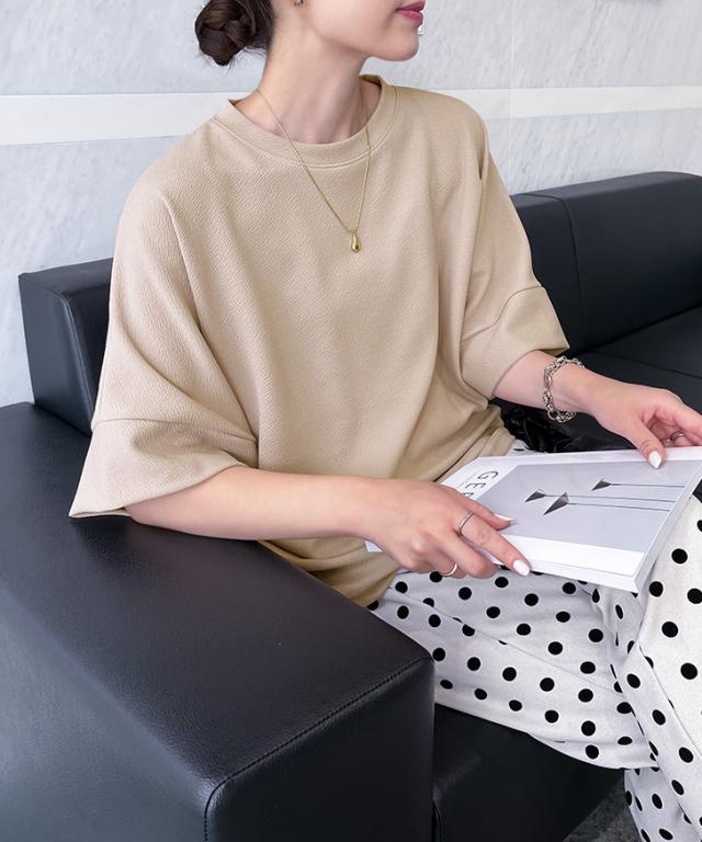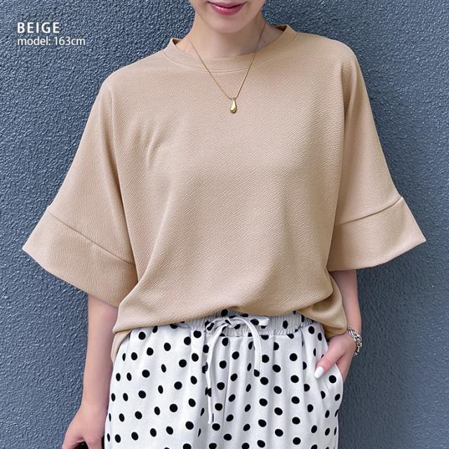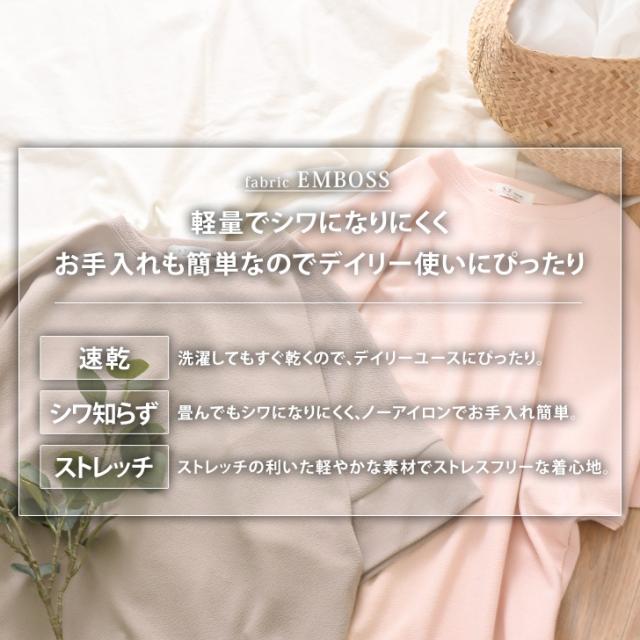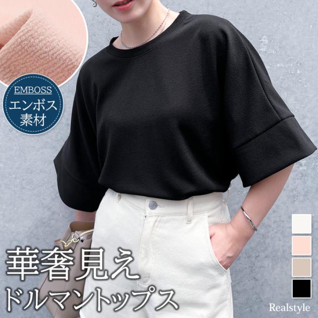 新作 カットソー レディース 半袖 五分袖 トップス エンボス ドルマン カジュアル ゆったり 速乾 吸水 春 夏 涼しい 無地 白 おしゃれ