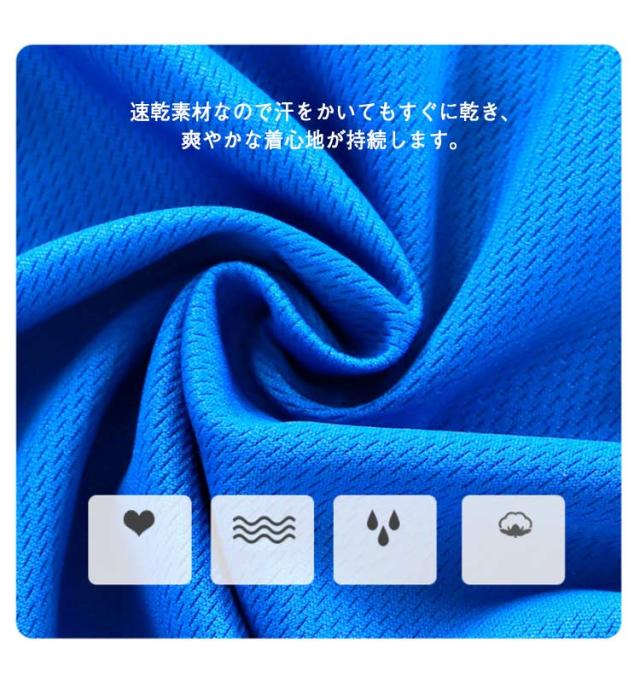 | カジュアルで着やすい半袖Tシャツとショートパンツの上下セットです。 速乾素材なので汗をかいてもすぐに乾き、爽やかな着心地が持続します。 メッシュ状になっているので、発汗時でも素肌に生地を密着させず、ベタつき感を軽減。 無蛍光剤なので、肌の弱いお子様にもご安心な素材です。 スポーツ、ランニングやウォーキング、レジャーやアウトドアにもお使い頂けます。 暑でもちょっと公園やルームウェアとして快適、便利に着られます。 | |