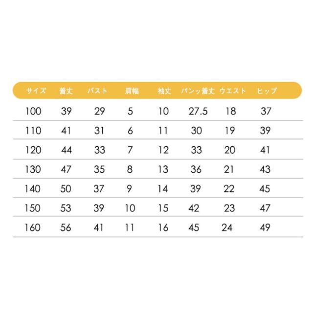 | サイズについての説明 | サイズ 着丈 バスト 肩幅 袖丈 パンツ丈 ウエスト ヒップ ※メジャーでの採寸のため、1-3cm誤差がある場合がございますがご了承ください。 |