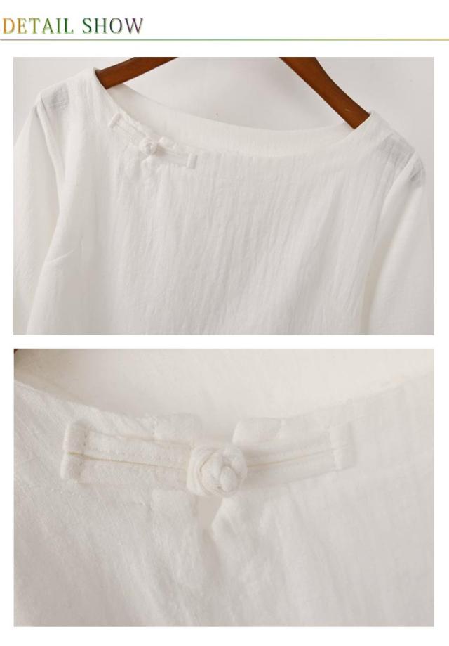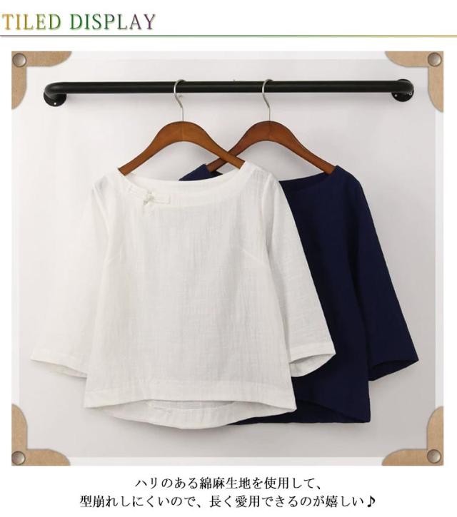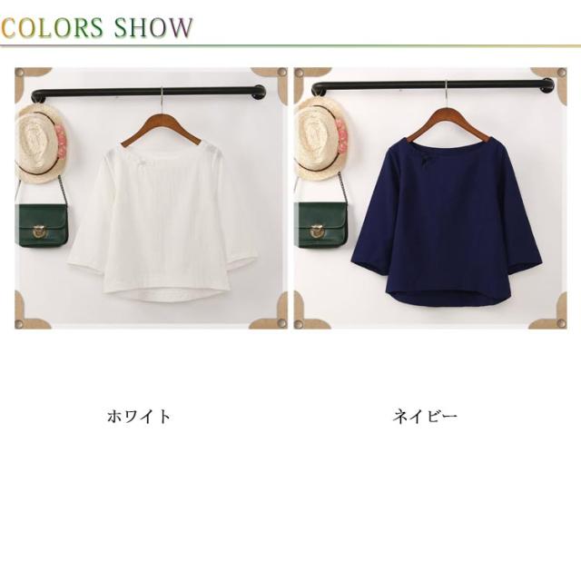 送料無料 リネントップス 綿麻 七分袖ブラウス 春服 トップス レディース シャツ ブラウス シンプル ナチュラル コットンリネン ゆったり ショート丈 ラウンドネック