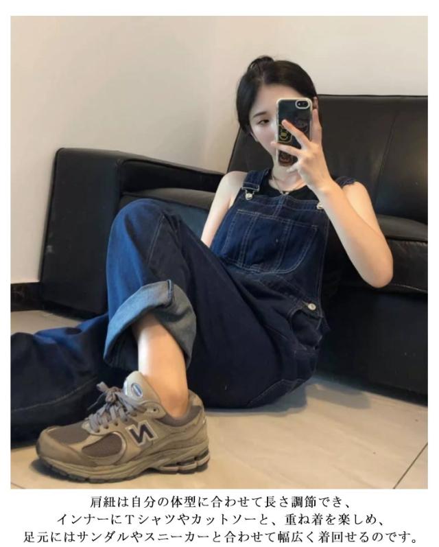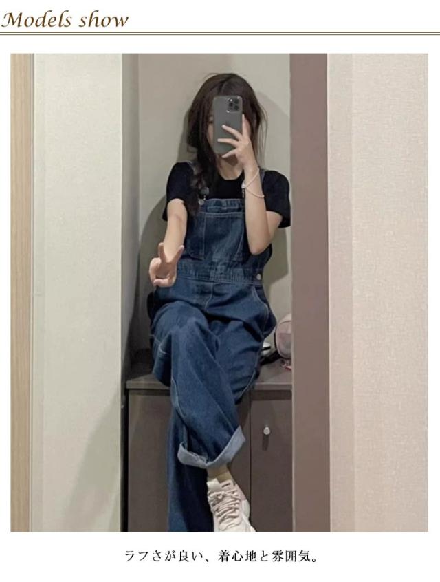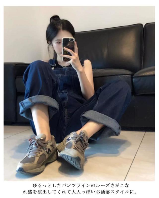 デニム サロペット パンツ レディース デニムパンツ オールインワン 春 夏 秋 オーバーオール 春夏 ロング ワイドパンツ 大きいサイズ 体型カバー ゆったり 大人 リラックス かわいい 楽ちん