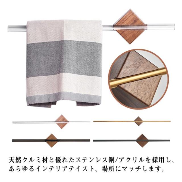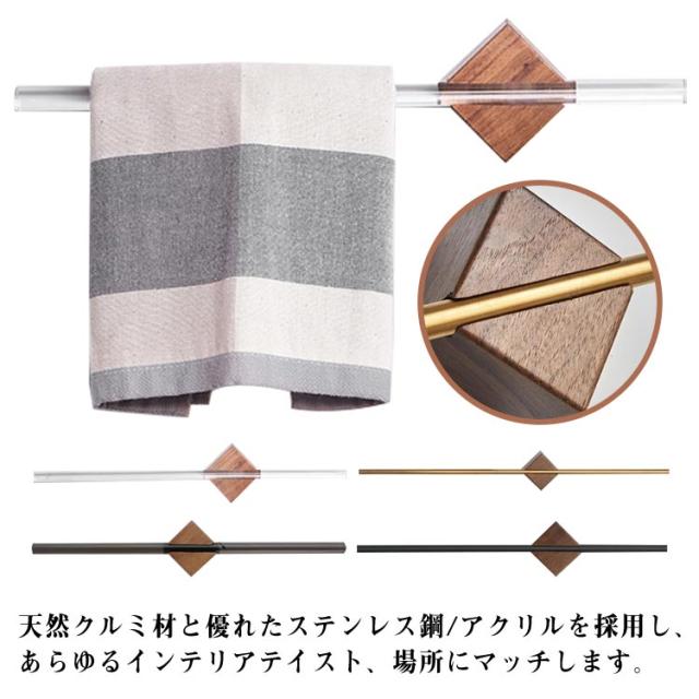 タオル掛け 洗面所 壁 ステンレス鋼/アクリル タオルハンガー バス用品 タオルホルダー クルミ 木製 天然木 キッチンタオルハンガーバー 40cm 50cm 壁 ハンガー タオル干し シンプル 北欧 高級感 おしゃれ 一人暮らし 引越し祝い