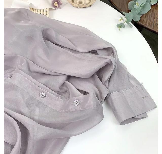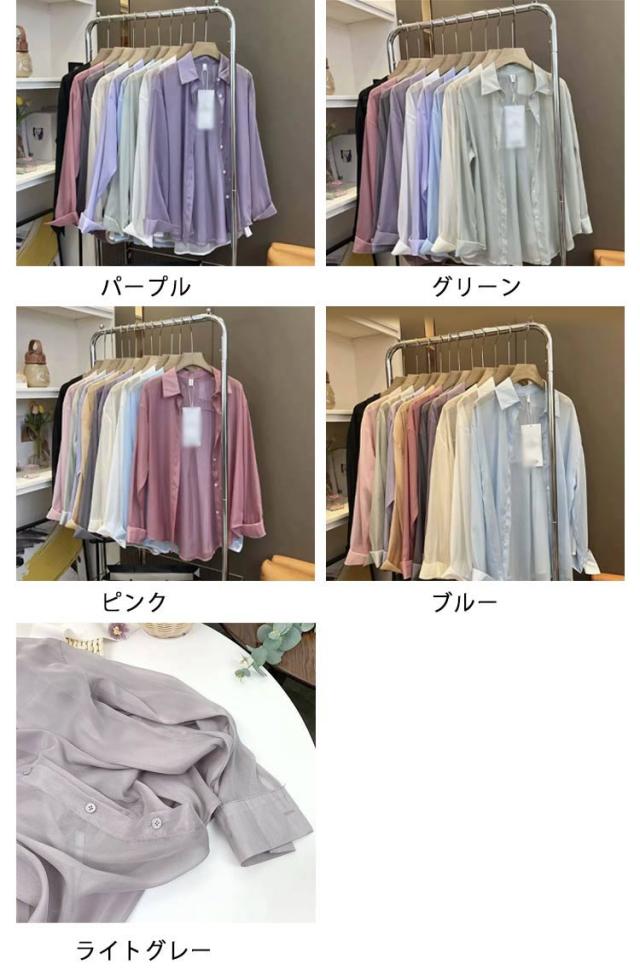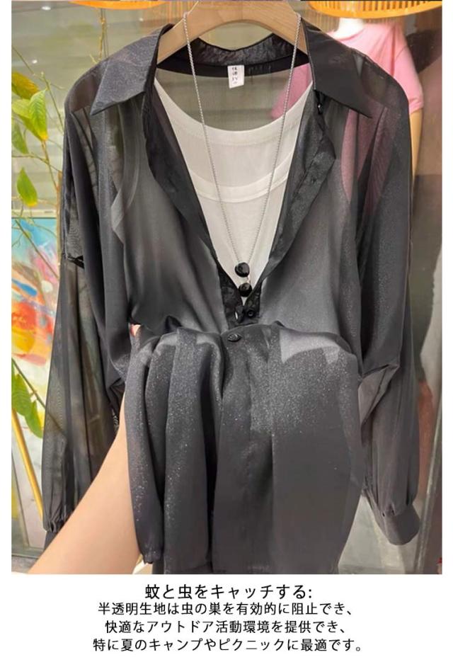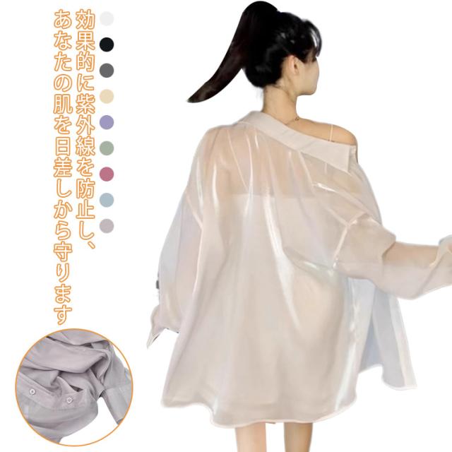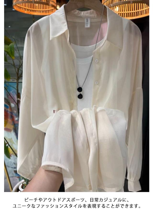 送料無料 シアーシャツ 透け感 レディース日焼け止め 上着 日焼け止め シャツ 透けシャツ 長袖上着 シャツ 前開きシャツ 重ね着 大きいサイズ トレンド 白 カジュアルファッション ゆったり涼しい 夏 春 秋 ライトブルー