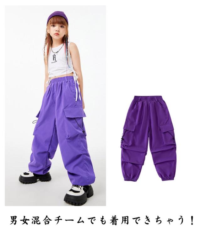 ダンスパンツ ヒップホップ カラーパンツ キッズダンス衣装 カーゴパンツ ダンスウェア ルームウェア 部屋着 子供ダンス服 ジャージ 男の子 ガールズ ダンス衣装 ボトムス 長ズボン キッズ hiphop K-POP 韓国 ダンスズボン 紫 赤 茶色 白